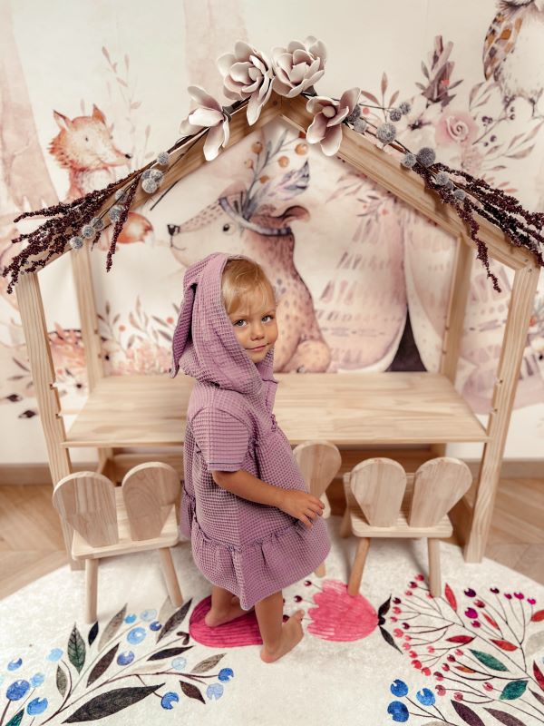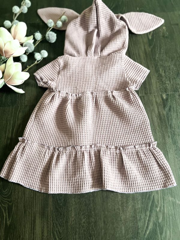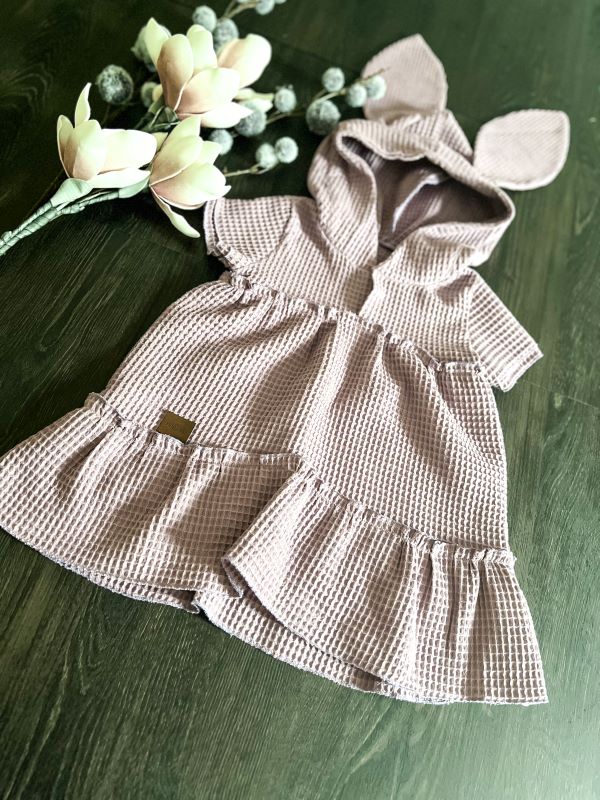 The BUNNY dress is more than just an ordinary dress. It’s also a great outfit that will turn your child into a cozy bunny. This beautiful waffle dress with a large hood with ears looks lovely on a young lady. Its cut makes it very comfortable and very willingly chosen by our children.